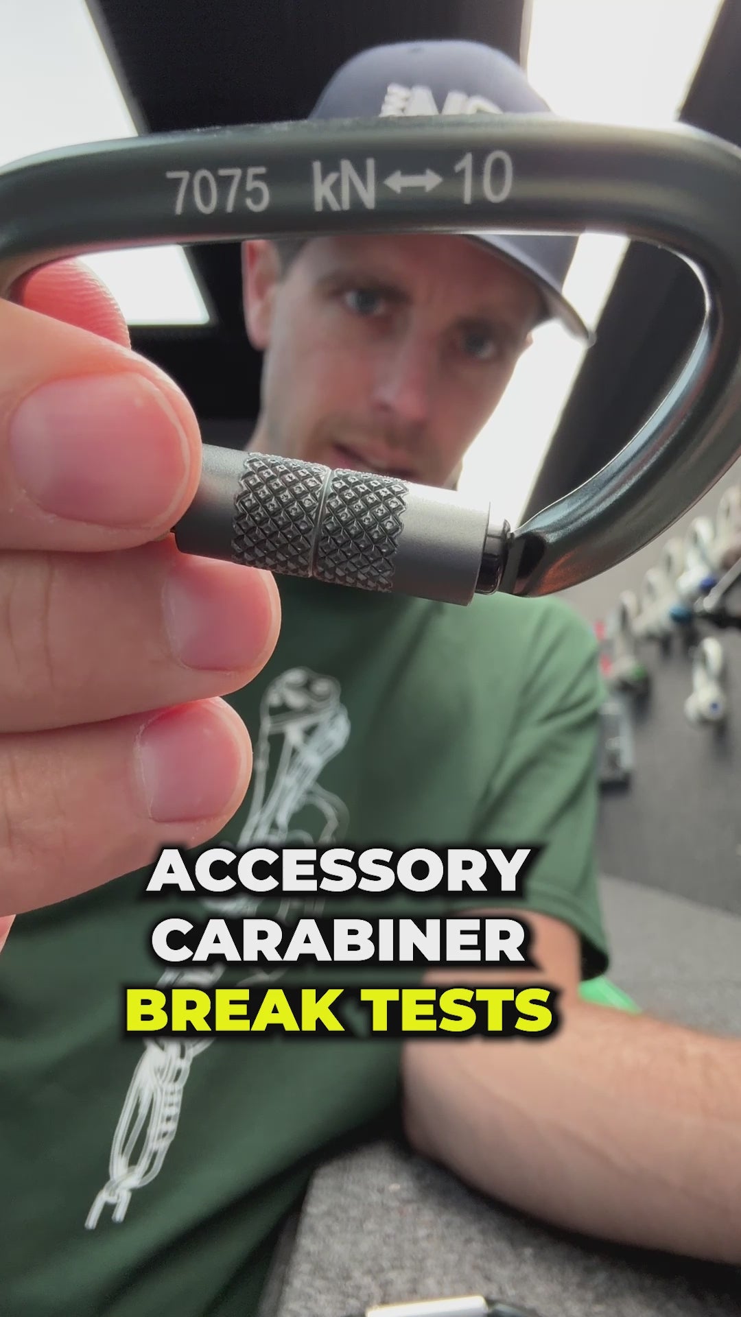 *The solid gates broke about 1 kN less than their rating. We first notice the gate breaking off the nose, then the carabiner body breaks next.