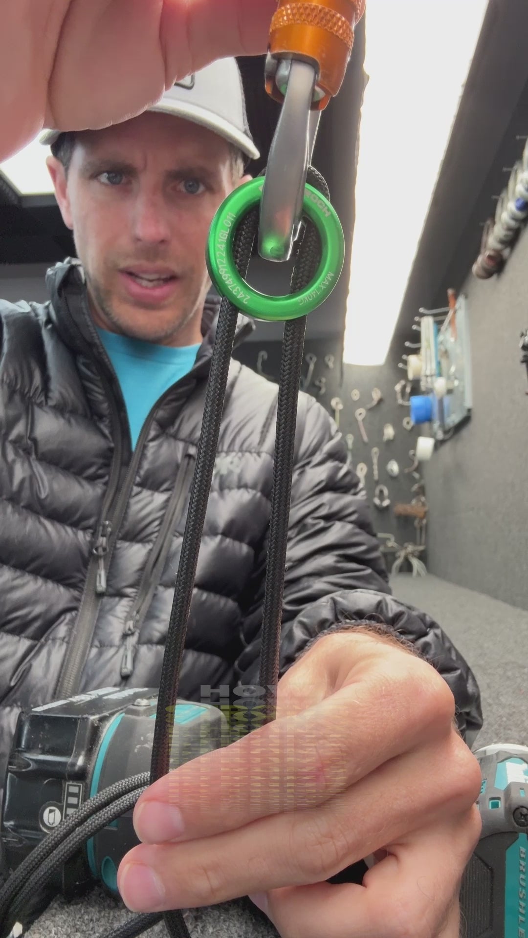 Adjustable length tool leash that easily girth hitches to drills, hammers, and other tools. Auxiliary attachment point allows you to clip your tool directly to your harness. This is not PPE or life saving equipment. It is designed to stop you from dropping your tools, not to stop you from dying.