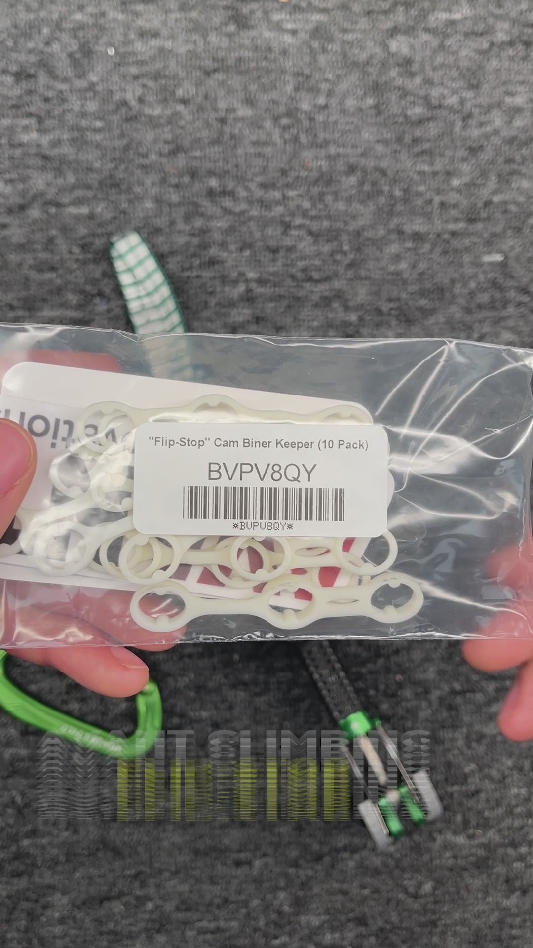- This flexible stabilizer is compatible with a wide range of carabiners and cam models, offering versatility to suit your specific rack setup. (Fits best on narrow slings, but can fit all cam slings on the market)
