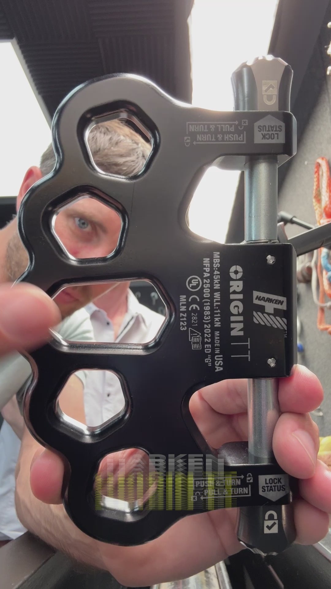 On the raise/lower side, Origin TT provides a seamless link with Harken Clutch and similar multi-purpose devices from other manufactures, eliminating the need for carabiners and shortening overall system length. There are five attachment points on the anchor side which enable rigging of ‘SERENE’ systems (Systems Strong, Equalized, Redundant, Efficient with No Extension potential.)