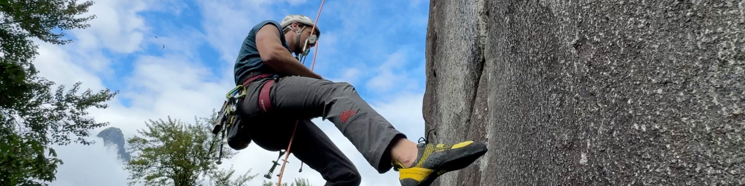 Since you'll be fixing your rope from the top of the pitch, you will need a rappel device to get back down! We like using an assisted braking belay device for this. They do a good job of keeping you in place when you stop to re-fix your rope and can even double as a progress capture device in a pinch.